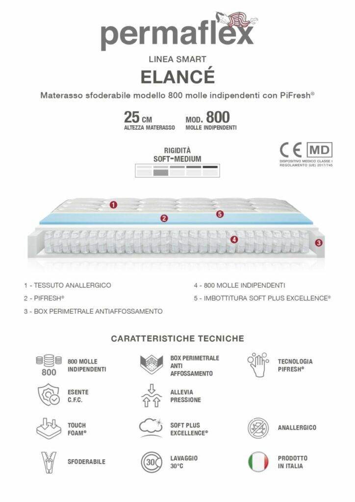 Elancè è il materasso che unisce elasticità e raffinatezza. Offre un sostegno reattivo e confortevole, ideale per chi desidera una superficie accogliente ma sostenuta.