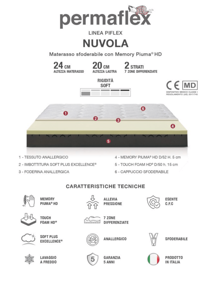 Nuvola avvolge il corpo con delicatezza, offrendo una sensazione di leggerezza e morbidezza controllata. Ideale per chi cerca un’accoglienza soffice senza rinunciare al sostegno.