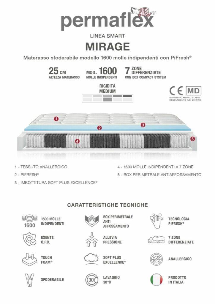 Mirage combina comfort e struttura in un equilibrio armonioso. Progettato per accompagnare il corpo durante la notte, favorisce un riposo profondo e continuo.